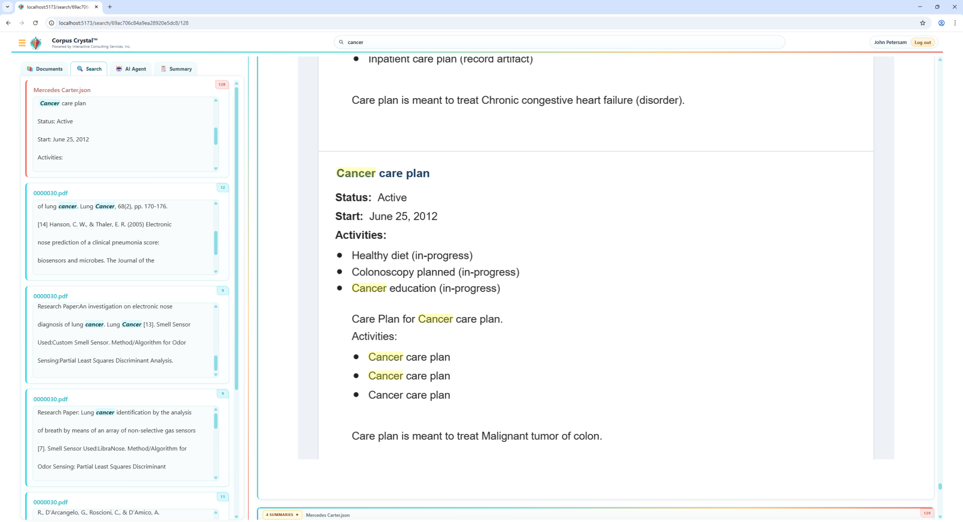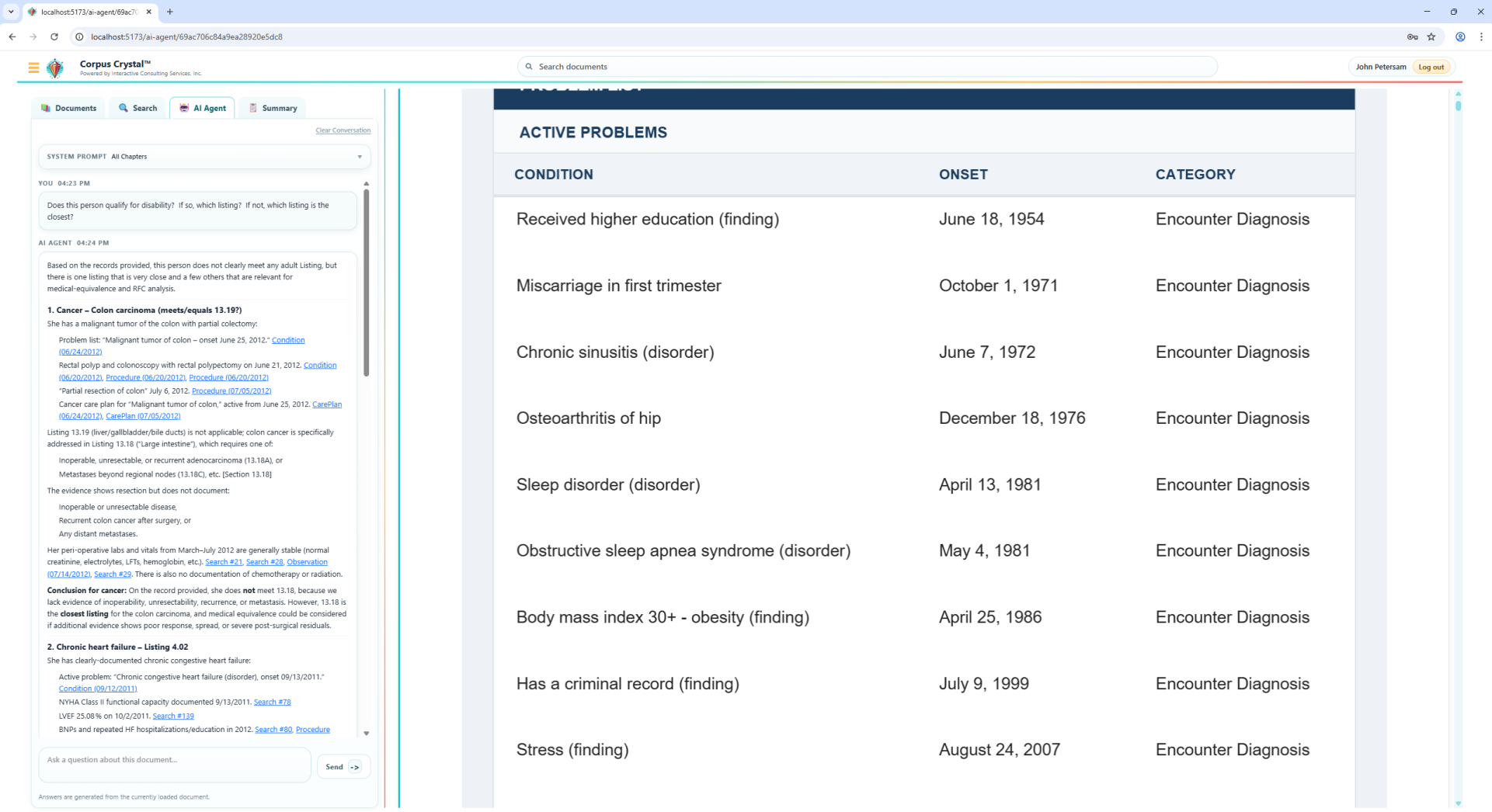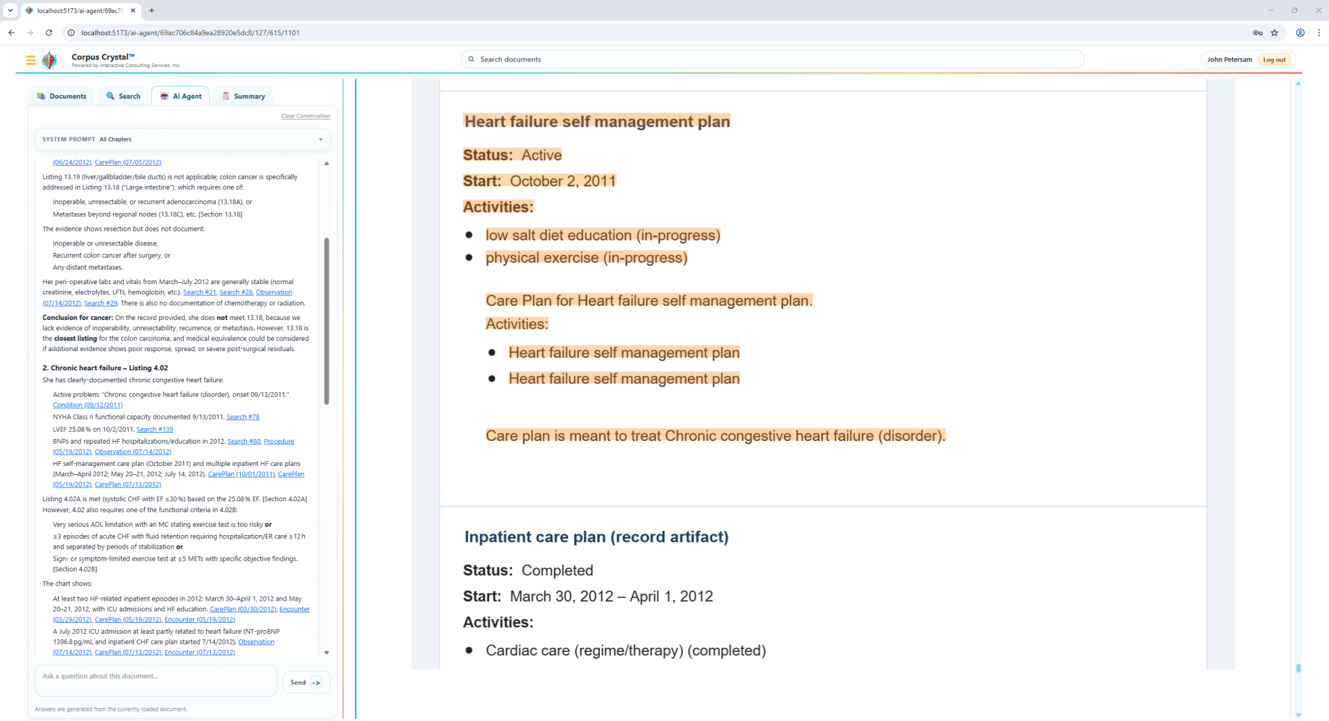 Corpus Crystal includes an AI Agent that allows users to ask free‑form questions about a document or bundle. The system: